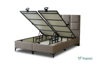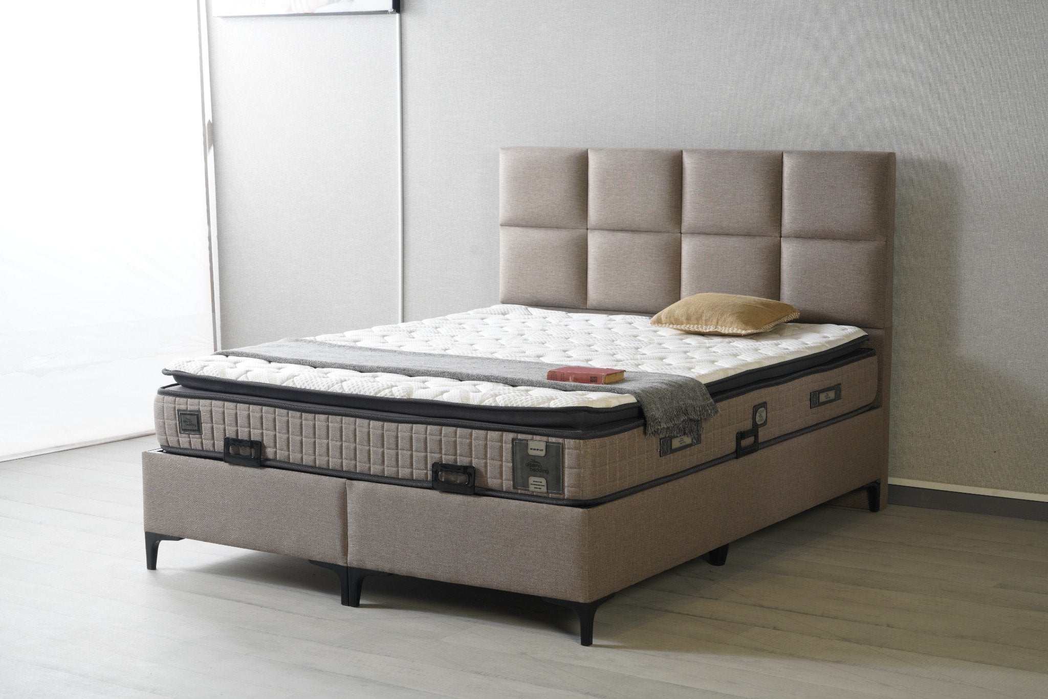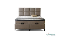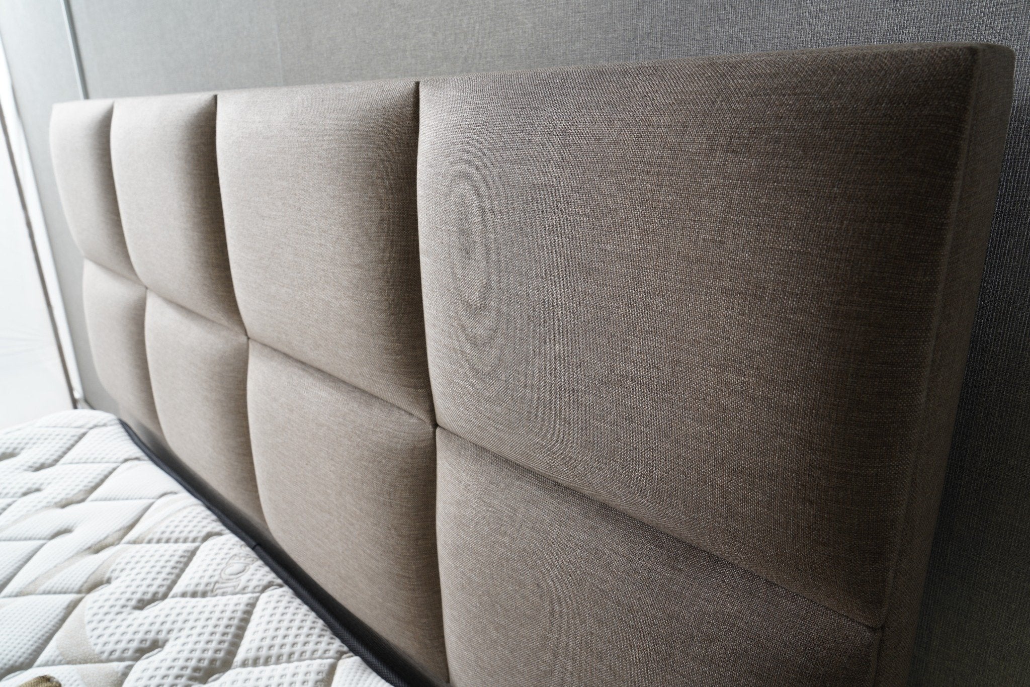 Ontdek de Dreva, een modern compleet bed in zachte taupe stof. Strak design, tijdloze elegantie en ultiem comfort – geleverd met matras, exclusief bij Leysara.