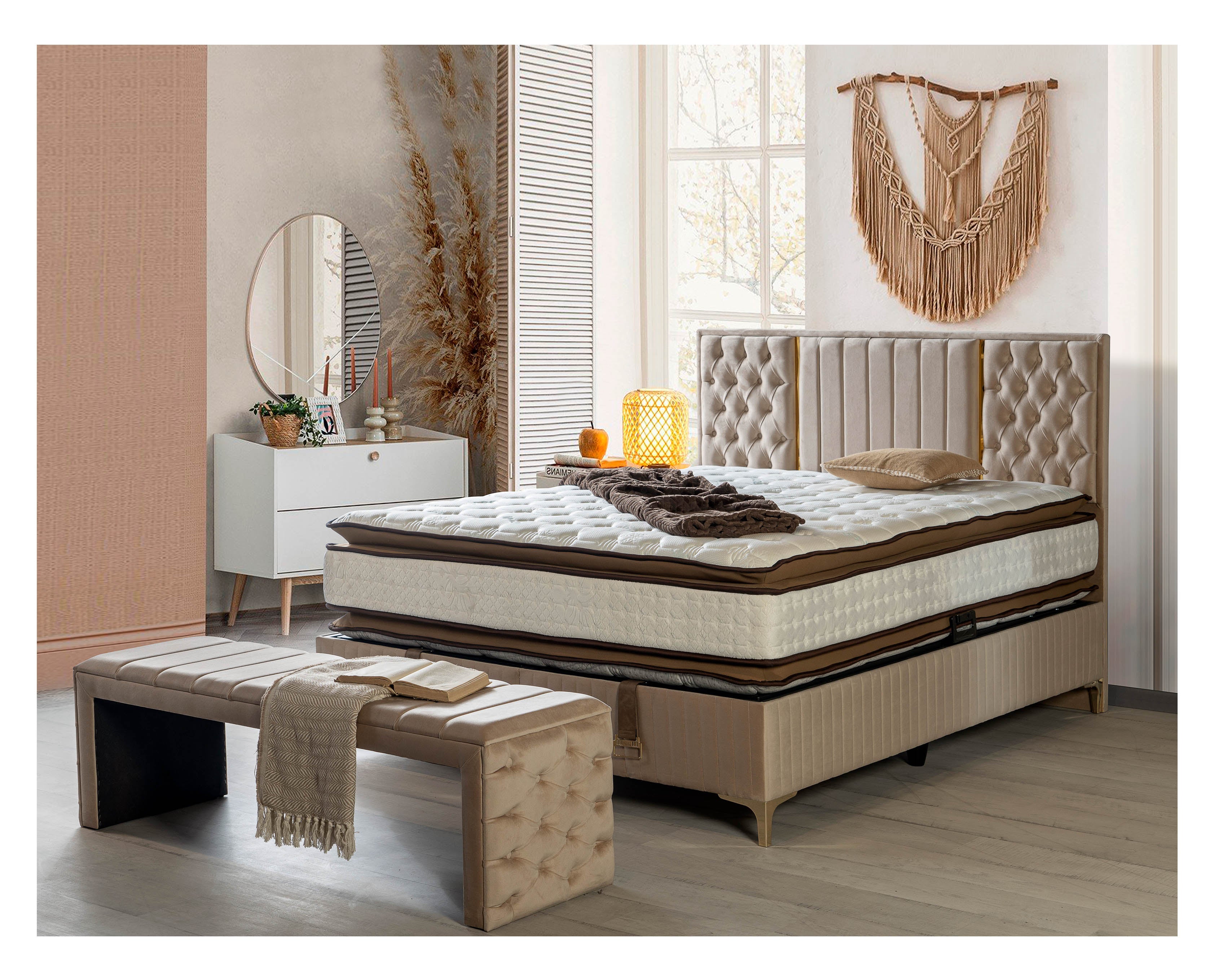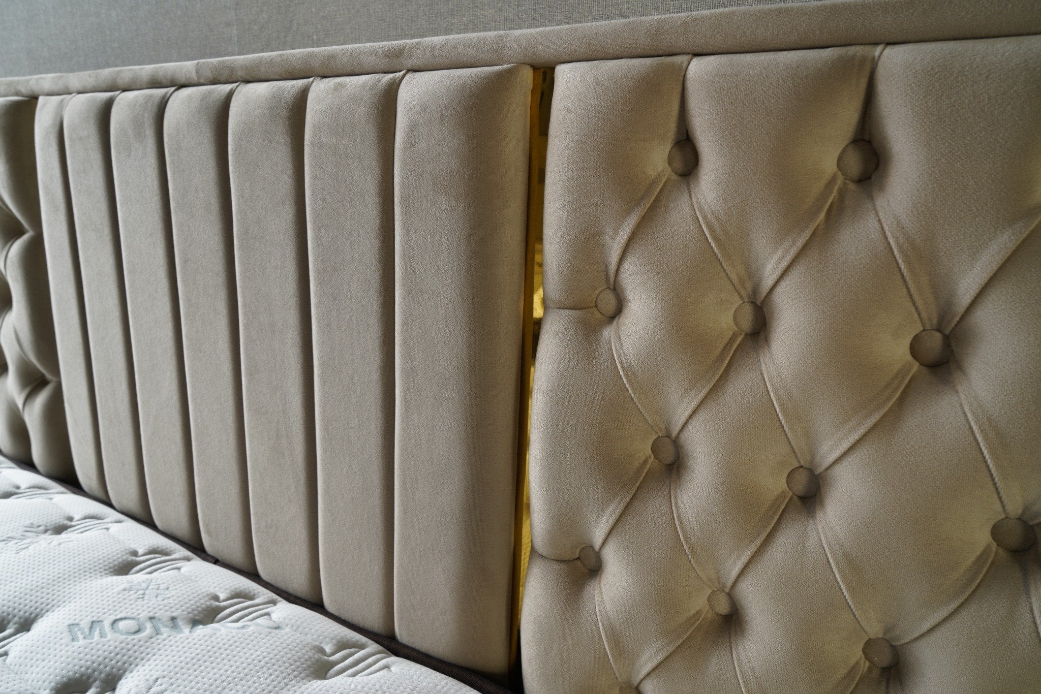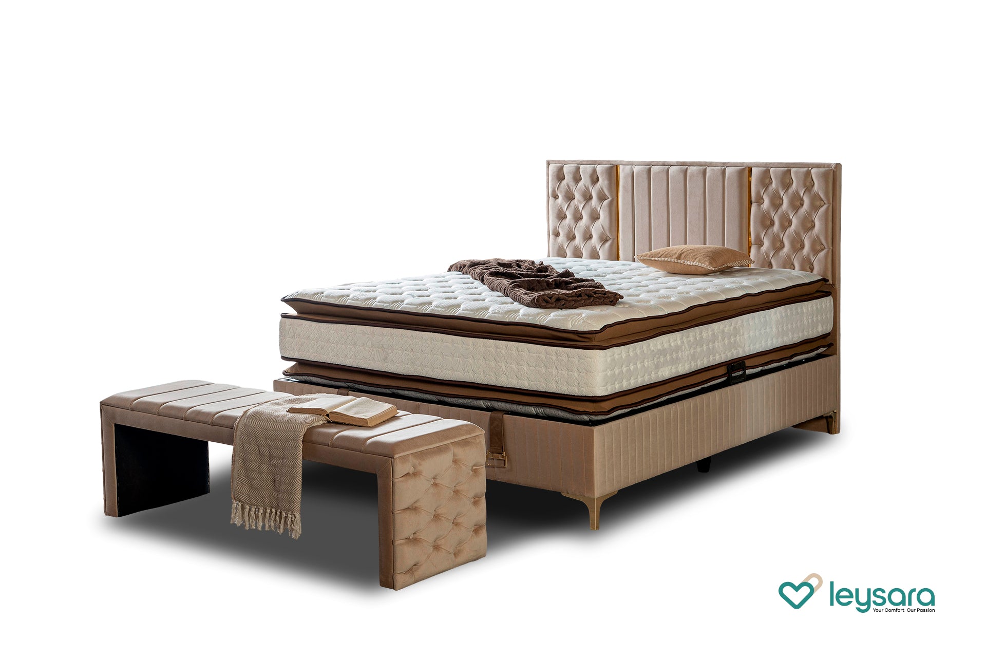 Het Montera-bed straalt moderne luxe uit met zijn antracietkleurige fluwelen bekleding en koelblijvend matras. Geniet elke nacht van stijl, rust en hoogwaardig comfort – exclusief bij Leysara.